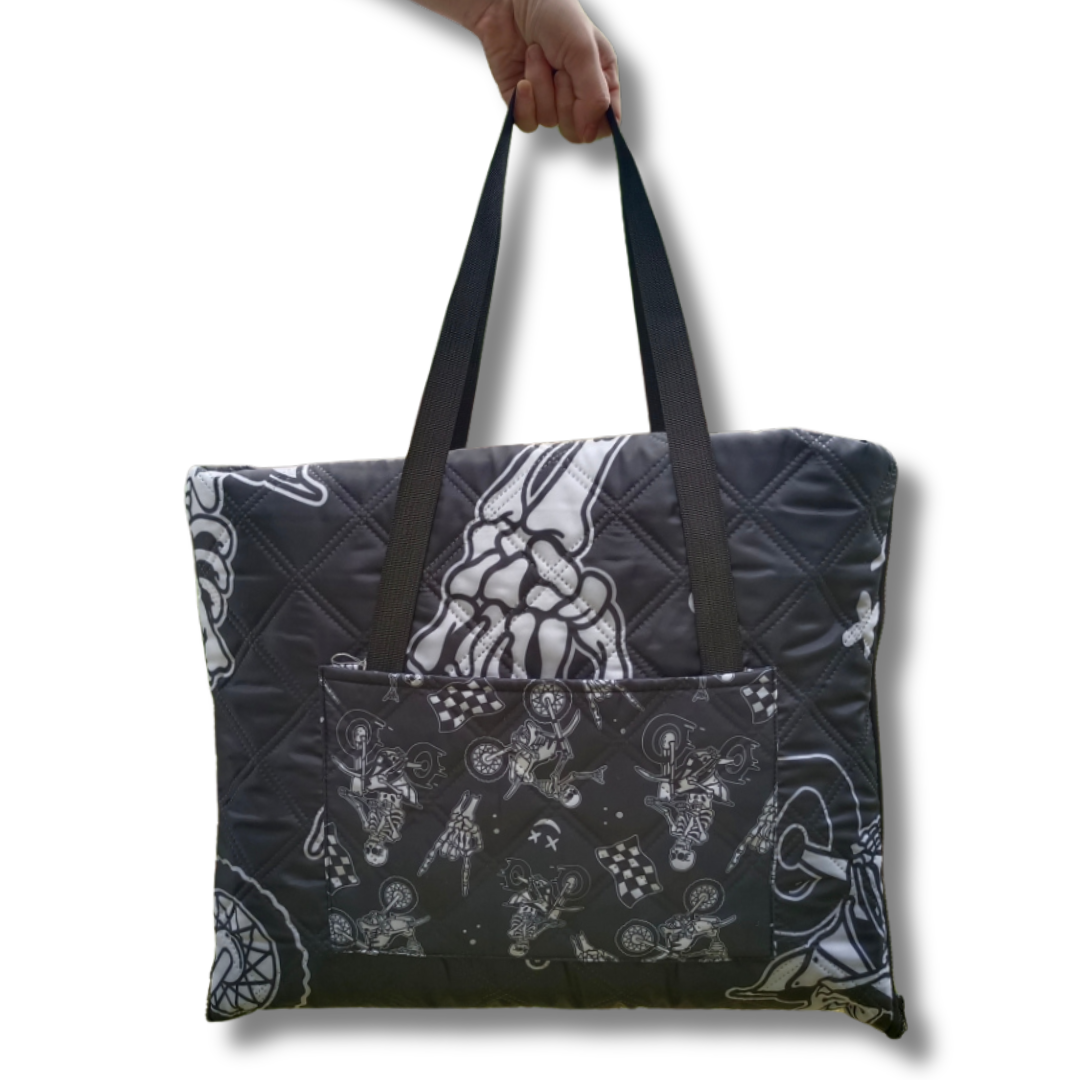 Featuring a rad design printed on its durable Oxford cotton cloth and polyester material, our Track Mat not only adds flair to your outdoor setup but also provides a comfortable and clean surface to relax on. Don't worry about storage - our mats fold up perfectly into a convenient carry bag, complete with a small front pocket for your essentials. Need extra storage? The folded mat doubles as a bag where you can stow your items.