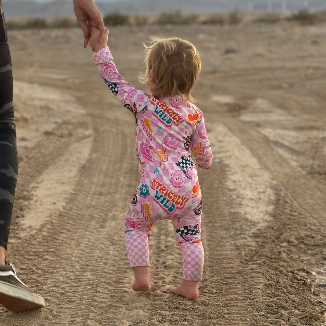 Featuring stylish checkered cuffs on the hands and feet, our pajamas pay homage to racing and have always been a Strictly Wild staple from the beginning.